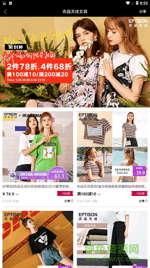 1、精品分类-- 服装、美食、美妆、母婴等明确分类,购物轻松自如