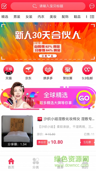 一家专门提供天猫淘宝内部优惠券的购物APP!类目齐全:女装、男装、内衣、母婴、化妆品、鞋子、包包、美食等,给您带来最完善的购物优惠券搜索体验!
