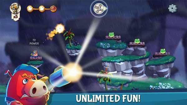 游戏要求玩家计算具有不同地形的不同射击路径。特别是,游戏具有复杂的地形和障碍,需要您加以利用。只有这样,您才能击败青蛙怪兽。风还是最显着影响子弹轨迹并导致计算困难的最困难因素之一。有时,玩家必须利用风,以便子弹可以到达具有挑战性的位置。