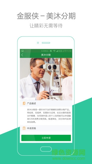 美沐分期软件是一款非常好用的视力矫正分期服务app,可以为用户提供眼睛视力矫正治疗的分期服务,让你在金钱不够的情况下也可以享受视力矫正,欢迎大家到绿色资源网下载使用!