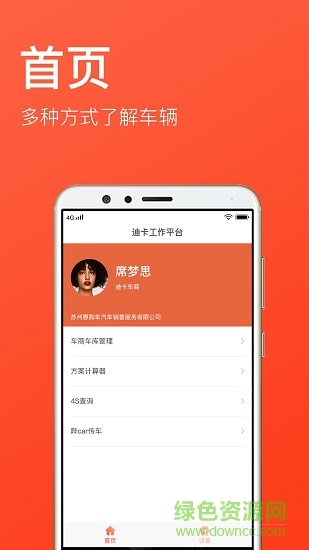 迪卡工作台是一款智能高效的手机办公app,车商管理销售数据统计订单详情可见,精准办公大大提高工作效率。快来绿色资源网下载体验吧!