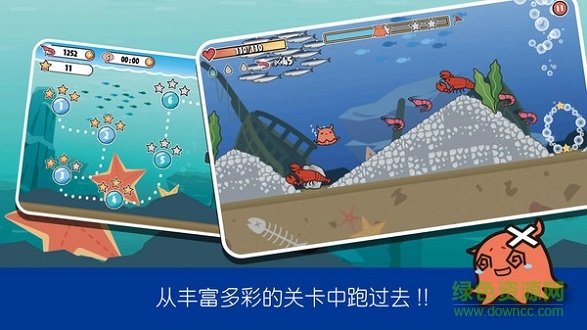 萌哒哒章鱼大冒险是一款休闲类性的海底冒险游戏,海底的生物繁多,作为一只章鱼你将如何进行冒险生存呢,玩家需要在游戏中控制章鱼的行动,需要在冒险的过程中不断地躲避敌人获取道具来成功过关,感兴趣的朋友就来绿色资源网下载安装吧