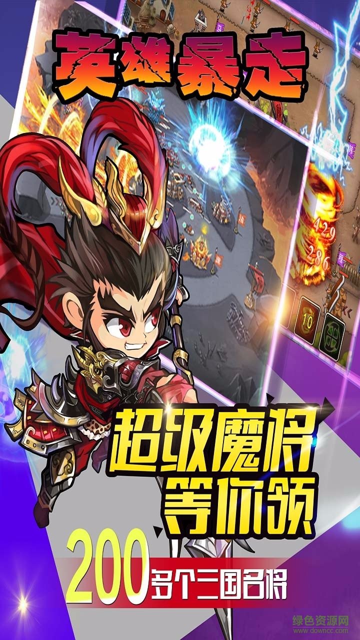 英雄暴走过果盘版是以三国为题材的塔防手游,趣味的三国争霸玩法,让你在烧脑的策略和200位名将中做出选择,多种酷炫的技能让你的战斗更加热血,绿色资源网诚意推荐!