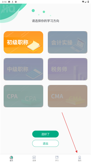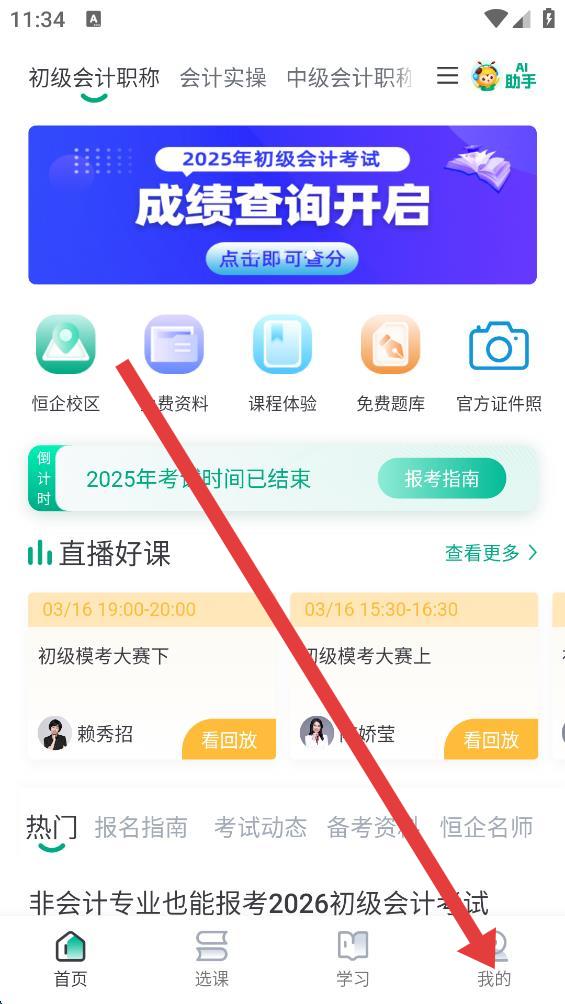 1、打开恒企会计APP,点击底部导航栏中的我的,进入个人页面。