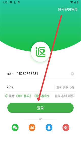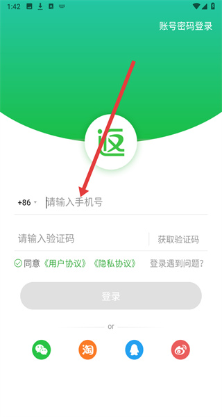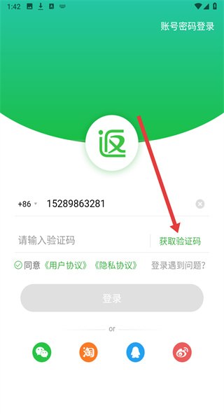 2、在进入到登录页面中时,可以点击上方输入框填写手机号以获取验证码进行登录。