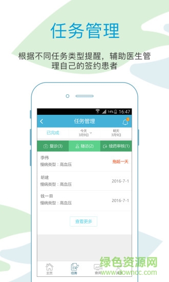 【任务管理】根据不同任务类型提醒,辅助医生管理自己的签约患者;