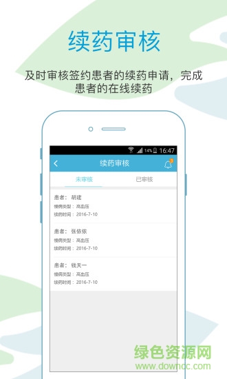 【续药审核】及时审核签约患者的续药申请,完成患者的在线续药;