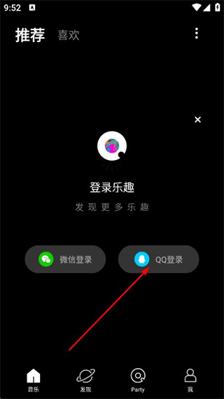 2、在登录弹窗中,选择QQ登录,跳转到授权页面。