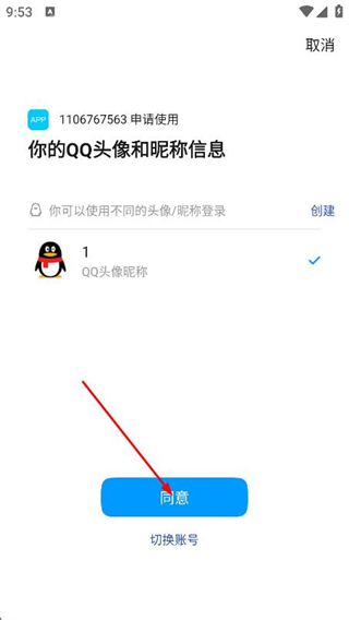 3、在QQ授权页面点击同意按钮,即可完成账号登录。