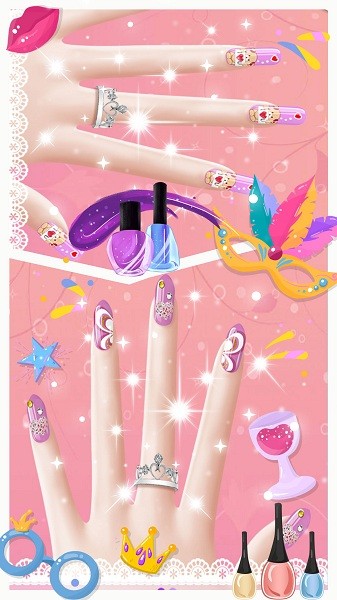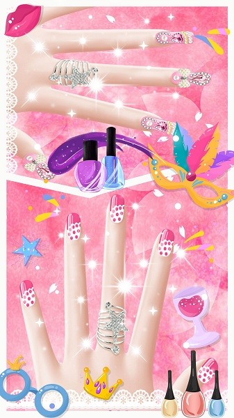 梦幻美甲沙龙就是帮每一个想成为公主的女孩实现DIY美甲之梦的小工具!亮闪闪的美甲油,丰富的指甲花纹,亮丽多彩的花纹贴还有各式各样的装饰贴...甜蜜梦幻的可爱图案等你来收集! 可爱漂亮的饰品,时尚的指甲套装,风格各异,是不是都想要试一试呢?你可以选择自己喜欢的指甲油、花纹贴、可爱指甲贴等,帮小公主做一个漂亮的美甲妆扮。