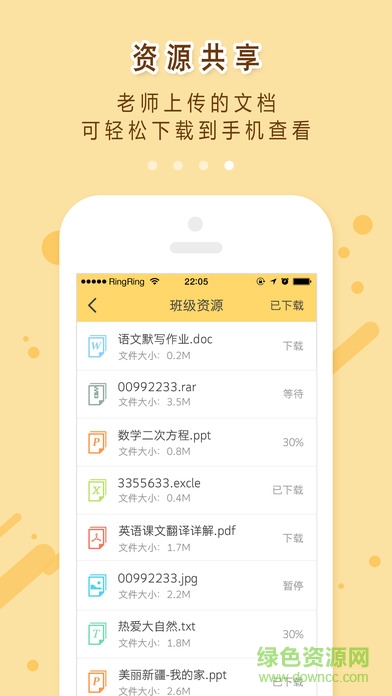 资源:在平台的班级中,老师上传的资源也可以通过手机查看啦。