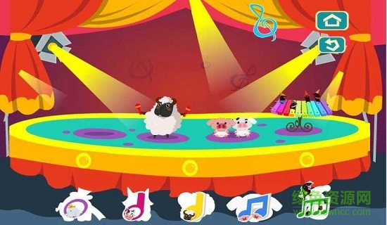 3.欢乐舞台:在欢乐舞台上,小朋友们可以认识到二分音符-哞哞牛,四分音符-咩咩羊和八分音符-噜噜猪。