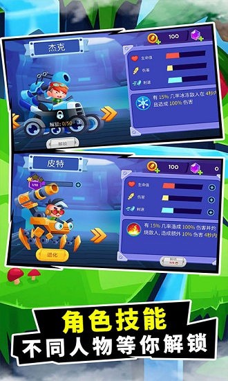 4、获得各种独特的皮肤形状,让你能够不断的获得进阶的力量,不顾一切地摧毁所有敌人。