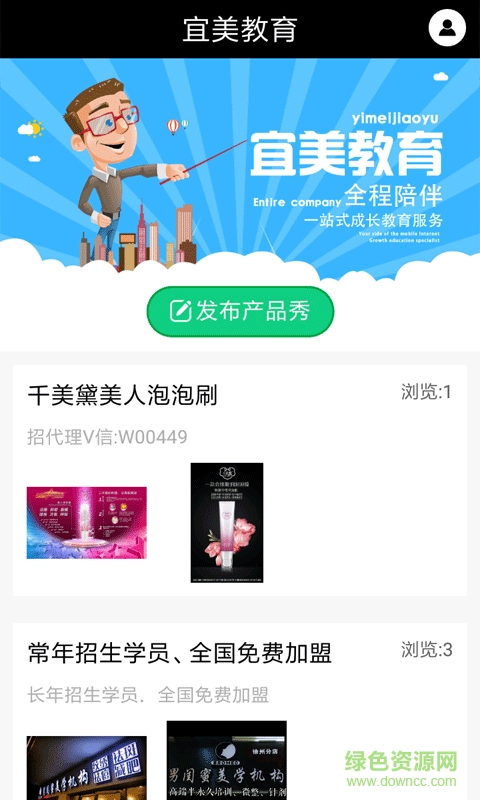 宜美教育app是一款创业服务手机软件,主要供想做微商的朋友进行使用,这里有微商大师为你在线授课,轻松学知识,还可以进行互动交流,为你提供全方位的就业指导,欢迎有需要的朋友到绿色资源网下载使用!