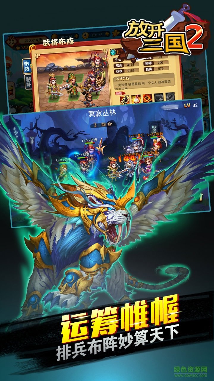 放开三国2变态版是一款卡牌棋牌变态手游,游戏充值比例大幅调整,为玩家带来诸多福利,画面华丽,打斗精彩,畅爽游戏,喜欢的朋友欢迎来绿色资源网下载体验!