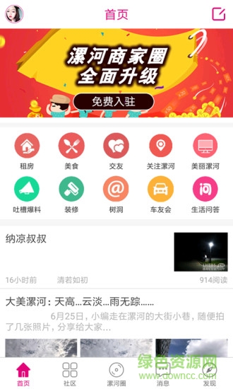 漯河通app是一款同城生活服务应用。为漯河用户提供了同城吃喝玩乐多项服务,可以在线订餐、找工作、租房子、交友等等。喜欢的用户快来绿色资源网下载吧。