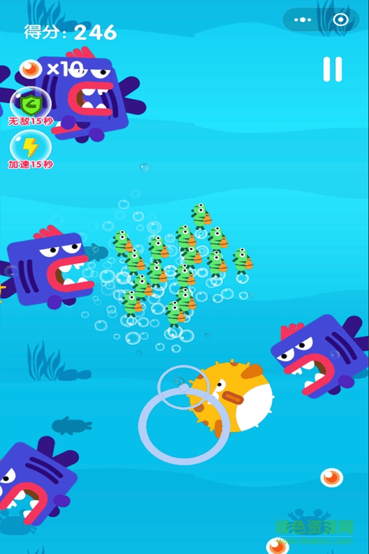 玩家只要用手指操控小青鱼的游行方向,小青鱼就能朝同一个方向游行。在游行过程中要避开各种大鱼哦!一不小心就会被大鱼啃食殆尽的。小青鱼属于一种群游活动,只要还有一条小青鱼,游戏都不会结束哟! 轻松遨游海底,组合美妙鱼群。在神秘又凶险的海底世界