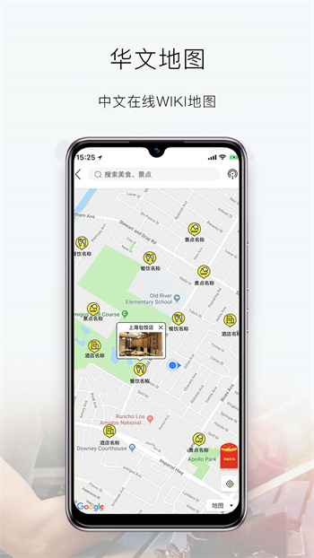 中文全球旅行地图,内置全面实用的景点、餐饮、酒店、交通、购物、中国使领馆、本地服务设施等信息,是海外出行的好伙伴。
