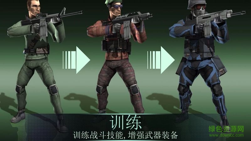 解锁配备有高级武器的士兵类型, 增强他们的战斗技巧来提高团队实力