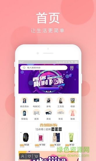 西邻在线app为用户提供了商品在线采购服务。可以快速搜索需要的商品,在线直接完成批发采购!每日提供有限时拼团、秒杀活动,能够为你省下不少钱!快来绿色资源网下载体验吧。
