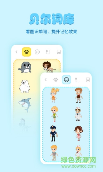 贝尔学单词app是专为儿童设计的一款单词学习软件,采用趣味性的教育方式,看图学单词,支持每日目标制定功能,超多词库在线学习提高孩子的词汇量,快来绿色资源网下载吧!