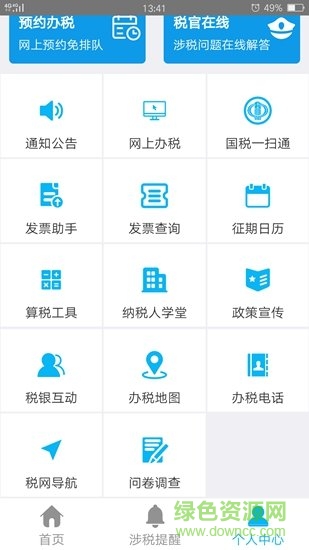 5、拥有发票查询、通知公告、网上办税、征期日历、办税地图、纳税人学堂等实用功能。方便纳税人办理相关税政业务。