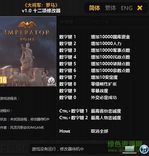 大将军罗马修改器是专为大将军罗马游戏打造的多功能修改器工具,这款修改器拥有一键增加兵力、增加进气、增加军事点数等不同功能,有需要的用户赶快来绿色资源网免费下载体验吧!