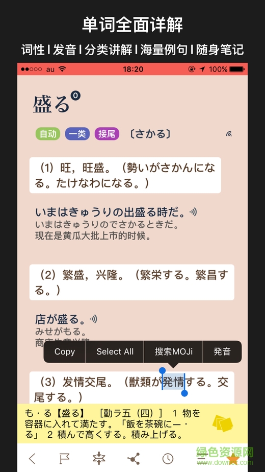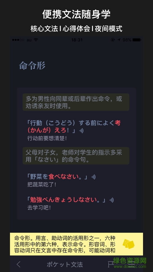 3. 语法详解:嫌词汇学习不够?MOJI便携版文法书让你随时绿色资源网随地学文法,实现日语全面突破~
