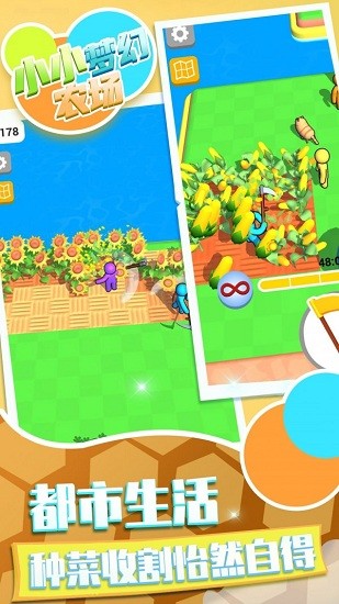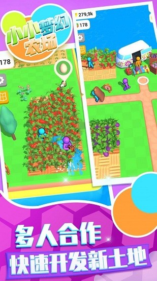 小小梦幻农场是一款趣味农场经营模拟游戏,开局领取一片荒地 ,召集更多工人,各种割草种植机器获取,搜集作物种子,季节播种作物收割赚钱,扩大你的农场经营吧。在这里经营自己的农场吧,可以在这里的菜园里种植各种各样的蔬菜,选择蔬菜种子播种,然后等他长大吧,这里还可以将自己的农场扩大哦,还可以雇佣其它的工人,让他们为你干活,然后让自己更加富有吧!