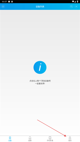 1、启动监控眼的应用APP,进入首页点击右下角我的图标。