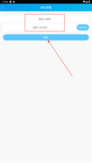 4、在该页面内,输入邮箱账号、验证码,再点击确定即可绑定成功。