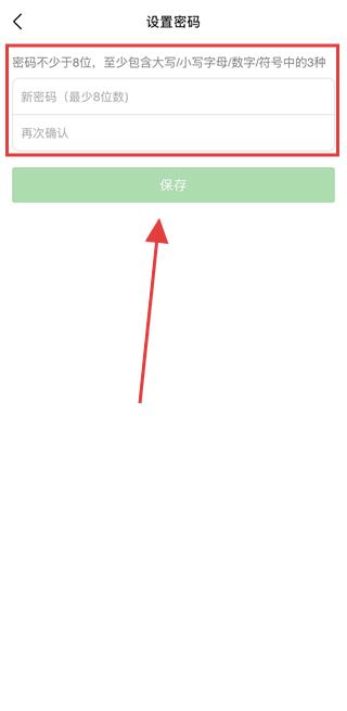 4、在设置密码页面中,设置不少于8位的新密码,再次确认密码后点击保存,即可完成豆瓣密码的设置。