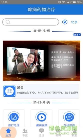 3、提供拨打电话,在线咨询以及癫痫视频播放的功能