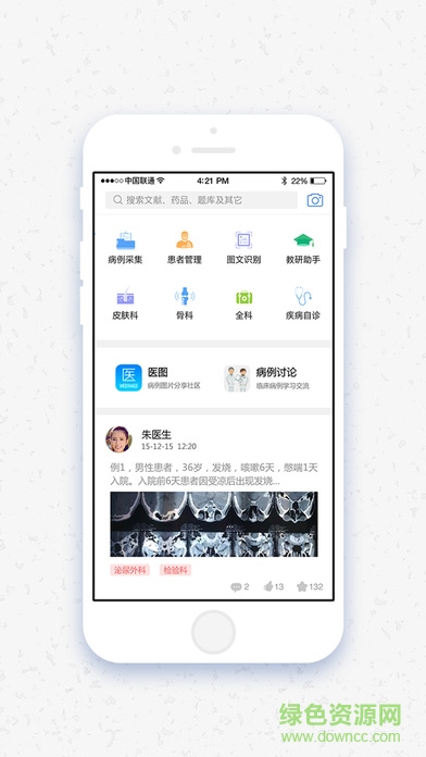 可以使用病例采集功能利用手机拍照、图文识别等方式快速记录和上传优秀病例,并和同行进行病例讨论分享。