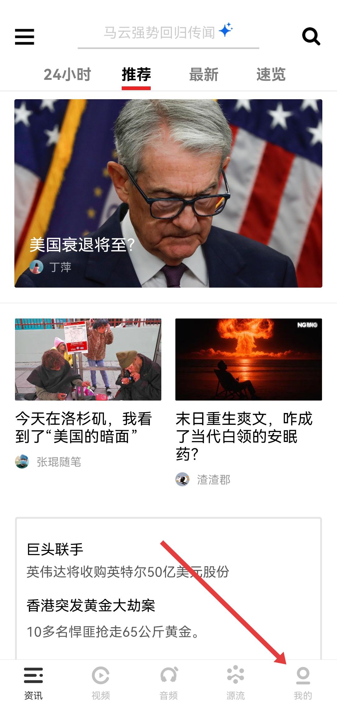 1、打开虎嗅APP,点击底部最右边我的按钮,进入个人的界面。