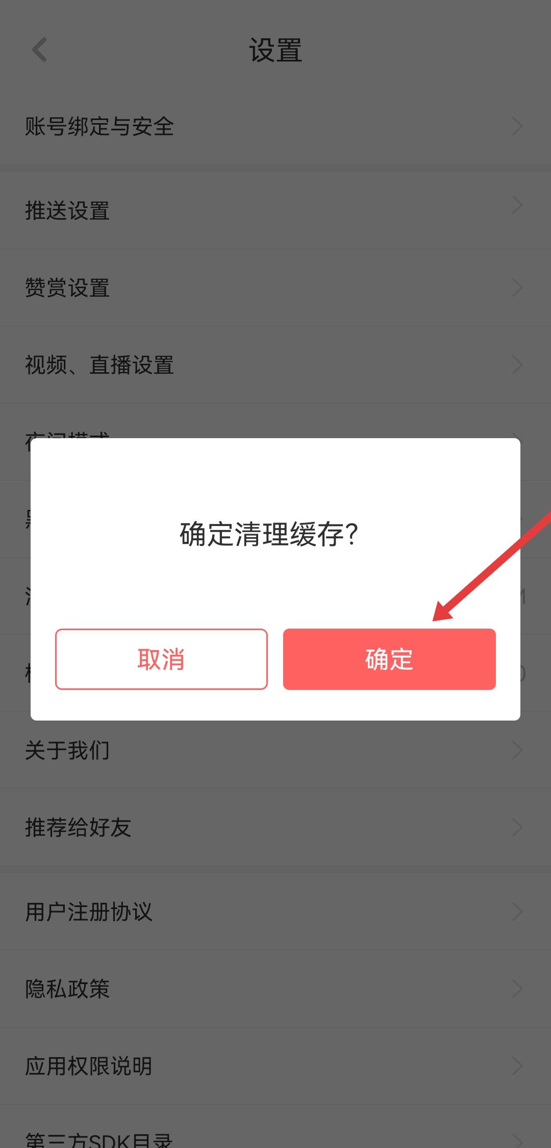 3、在设置的界面,需要点击清除缓存,弹出清理确认框。