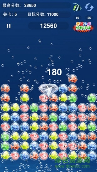 众多颜色不一样的小鱼儿来啦!萌萌的小鱼儿等着你来一起玩耍哦,只要点击颜色一样的小鱼儿消除分数达到目标即可通关,消灭的小鱼儿越多得到的分数越高。让大家轻松上手,淡定通关!来吧,小伙伴们,让我们一起好好玩耍吧!