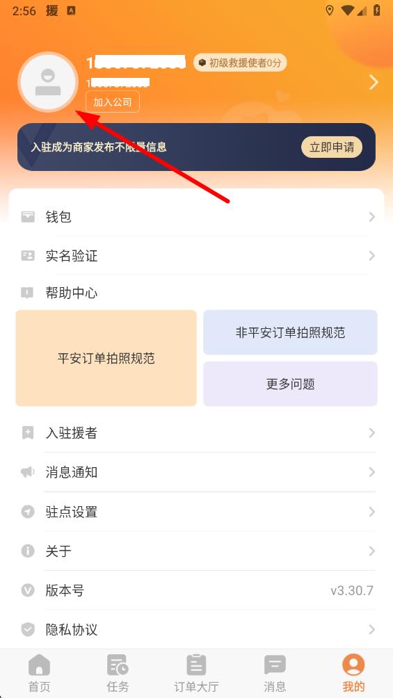 1、打开好师傅援助app,点击底部导航栏中我的按钮,进入相关界面。