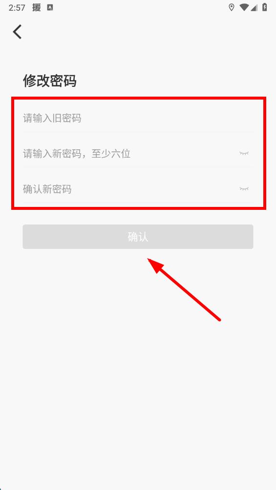 4、在修改密码页面,按要求输入旧密码、新密码,再次确认新密码后,点击确认按钮完成密码设置。