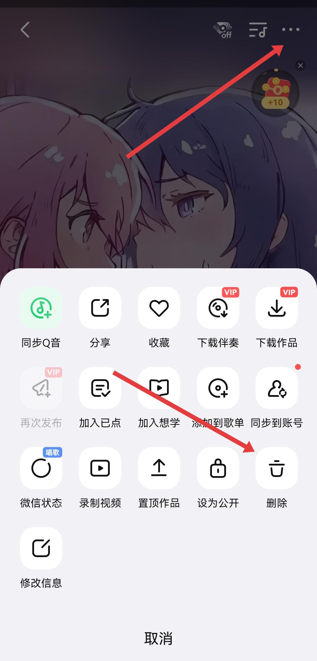 2、在作品播放界面右上角点击···的按钮,弹出功能菜单后,点击删除这个选项。