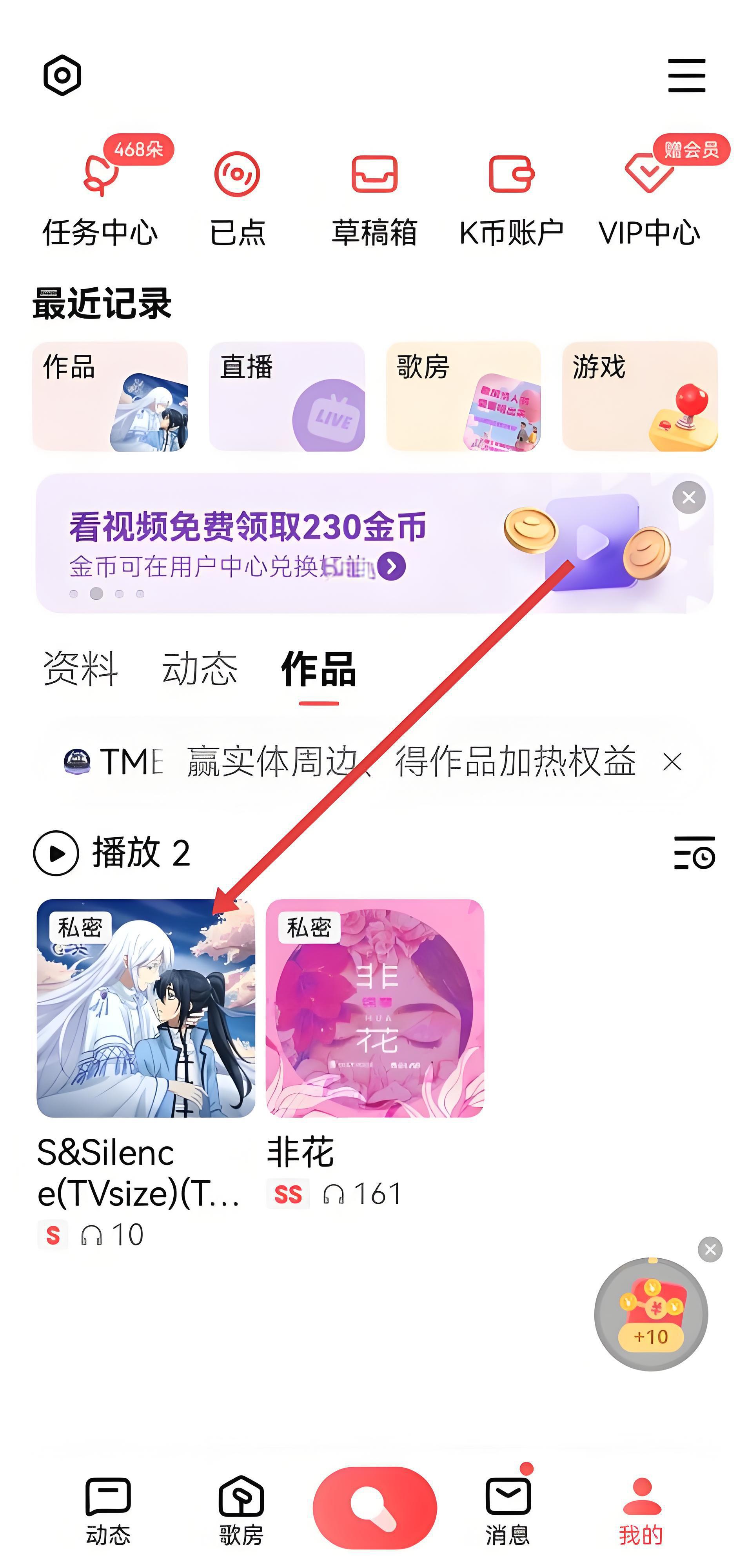 1、进入全民K歌我的页面,找到要删除的作品,点击进入作品播放的界面。