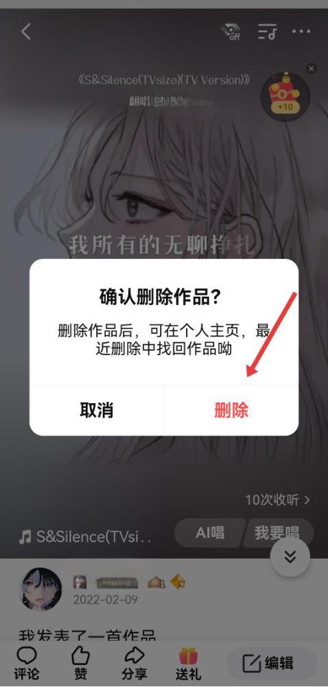 3、在确认删除作品的弹窗中,点击删除的按钮,就可以直接删除该作品。
