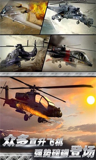 在飞机战场求中我们需要用上所有的策略去战斗,不是简简单单的攻击别人就可以了的。世界最强的战斗直升机正在等待着您。您将成为直升机飞行员,参与到各种刺激任务中!小心埋伏的敌人和特种作战兵,每一个都不简单,随时都有可能灭掉你所有的兵力。不管是飞机还是战舰,我们要意志力坚定,我们要找到他们的弱点然后干掉他们。