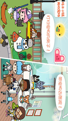 兽医可以帮助生病的宠物感觉更好或让健康的宠物保持健康!您可以找到药片、药水或给生病受伤的宠物动手术的器具。宠物可以在户外玩耍或在舒适的床上等待兽医来为它们治病。
