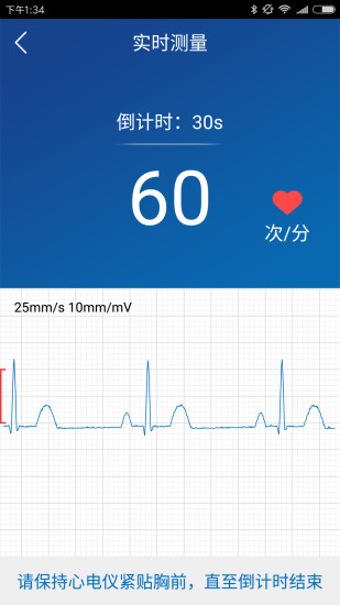 - 使用心电记录仪设备测试心率,将检测的实时数据同步至手机软件内;