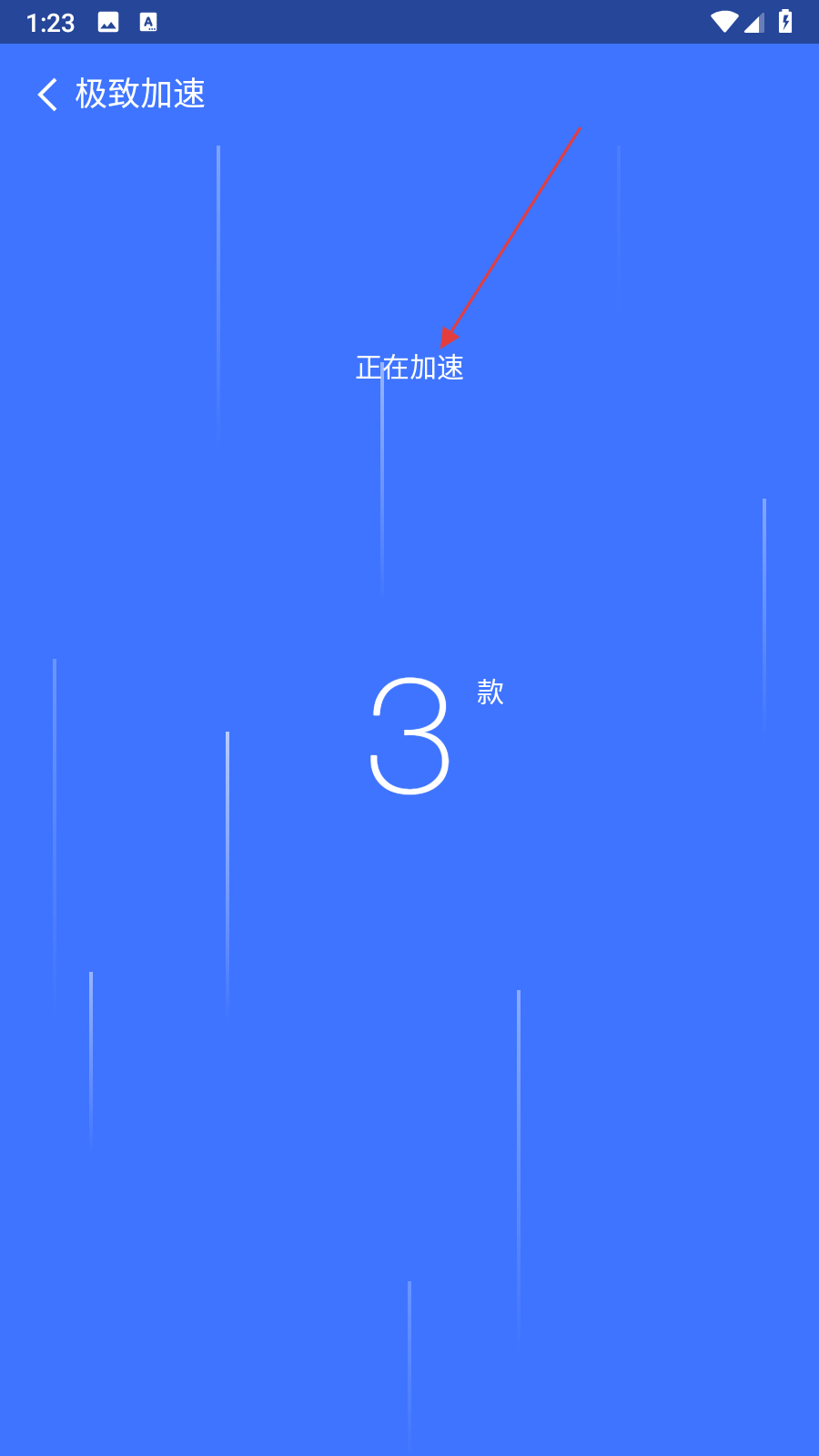 3、点击一键清理后,界面会显示正在加速的提示,同时能看到当前正在加速优化的软件数量,等待加速过程自动完成。