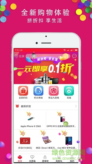 愿望折上折是一个优惠购物app,9折到1折, 超低的折扣,超值的商品,给你无限的惊喜。数百万宝贝任您选购,折上折商城着重关注消费者购物需求,引导品牌消费、理性消费、每天推荐高性价比的网购产品,为用户打造超值网购体验!快来绿色资源网下载吧。