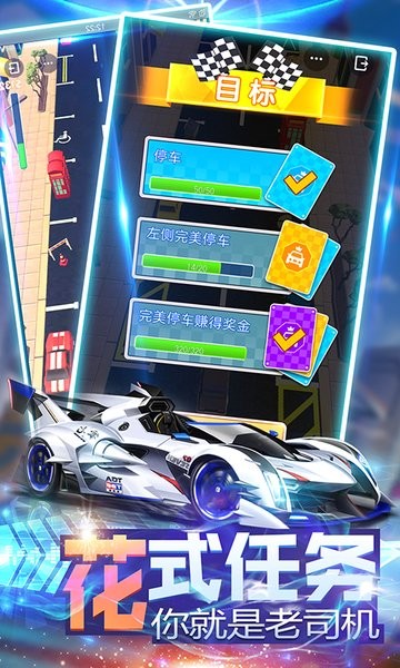 卡通画面风格的休闲驾驶游戏,玩家需要帮助高速行车的汽车完成停车入库.海量的挑战内容,还能奖励各种华丽的豪车,超多精彩的挑战模式,为你带来停车的乐趣!