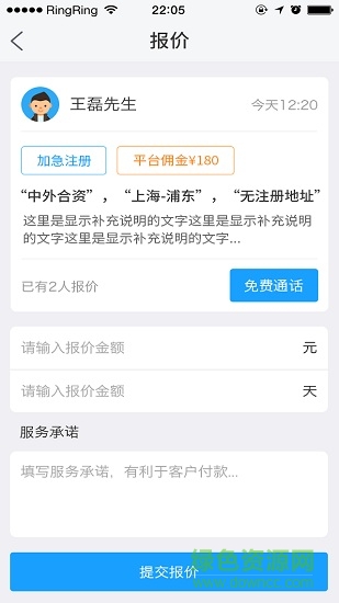 企业去哪注册宝是一款为公司注册的服务商开发的APP。服务商可以通过它抢公司注册的新订单,为创业者提供企业注册服务,并实时对订单进行进度管理。快来绿色资源网下载使用吧!