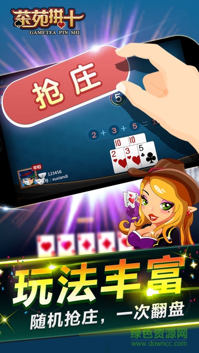 茶苑拼十手机版是一款非常有趣的手机棋牌游戏,游戏画面精美,超多牌友在线娱乐。游戏保证公平公正,乐趣多多。还等什么,快约上你的小伙伴,一起来绿色资源网踊跃下载吧!